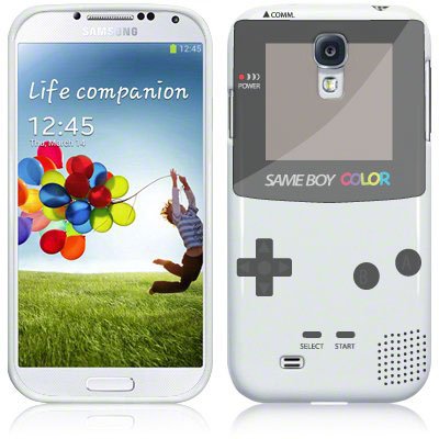 Etui de créateur pour Samsung Galaxy S4 i9500 - Etui / Coque / Housse de protection blanc en TPU/gel/silicone avec motif cool gameboy couleur