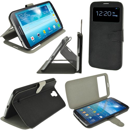 igadgitz Noir Étui Housse Flip Case Cover Cuir PU pour Samsung Galaxy Mega 6.3 I9200 Android Smartphone. Avec Protecteur d'écran, Fonction de Mise en Veille & Fermeture Magnétique