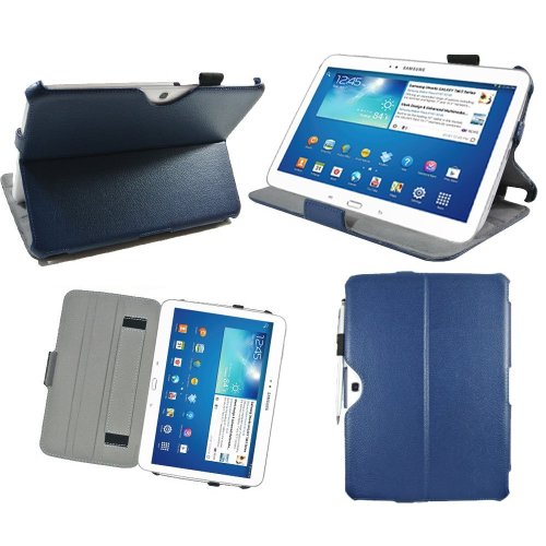 Cette housse tablette Samsung Galaxy Tab 3 10.1 pouces. Cet étui Style Cuir (cuir PU) de qualité faisant partie des accessoires indispensables saura donc garder votre tablette et vous permettra d'accéder facilement à ses différents bouton (à la manière d'une coque permettant d'avoir accès aux principales fonctions). Design Ultra Slim avec multi stand et fonctions Smart Cover (s'allume et s'éteint automatiquement lorsque l'on ouvre et ferme la pochette). Découvrez églamement le clavier Galaxy Tab 3 ! Couleur : Bleu