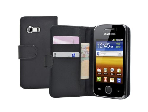 Noir Portefeuille Cuir Étui Coque pour Samsung S5360 Galaxy Y - Flip Case Cover + 2 Films de protection d'écran