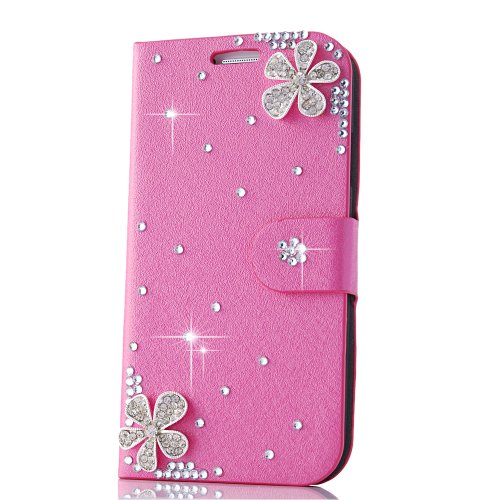 BestCool Rose fleur de Rhinestone En Cuir léger Cristal Diamant Etui Coque Pochette Bling Case PU Housse à rabat en cuir pour Samsung Galaxy S4 S IV i9500 i9505