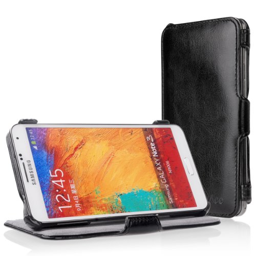 EasyAcc® Samsung Galaxy Note 3 Coque Housse Etui Cuir Flip cover de protection avec Support stand Pour Samsung Galaxy Note 3 III N9000 N9002 N9005 coque pochette (3G /Wifi / LTE / 4G ,Noir,PU Cuir)