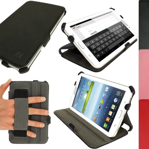 igadgitz Noir Étui Housse Case Cover PU pour Samsung Galaxy Tab 3 7.0" Tablet SM-T210 SM-T210R SM-T211 P3200 P3210 3G Wi-Fi Android Jelly Bean 4.1 avec Courroie de Main + Protecteur d'écran