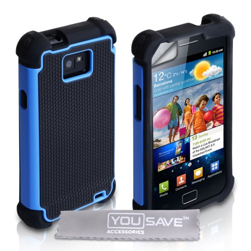 Yousave Accessories SA-EA01-Z324 Coque en silicone + Protection d'écran pour Samsung Galaxy S2 i9100 Bleu/Noir