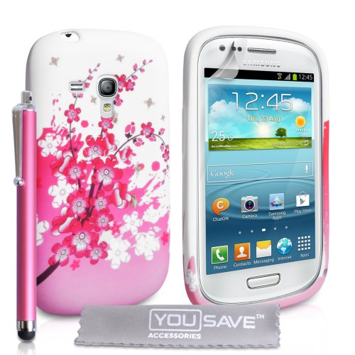 Yousave Accessories SA-EA01-Z963P Etui en Silicone Gel + Stylet + Film de Protection Samsung Galaxy S3 Mini Floraux Abeille Rose/Blanc